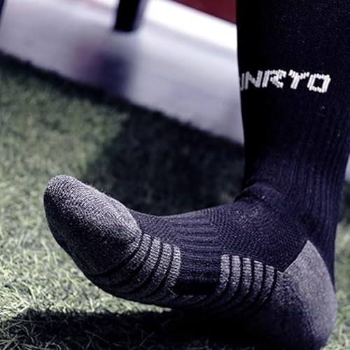 • ⚽【Product Material】FUNRY soccer grip socks crafted with high-quality polyester ,spandex and nylon, these soccer socks deliver exceptional softness and moisture-wicking performance. Black soccer socks breathable fabric keeps feet dry during intense matches while maintaining all-day comfort.